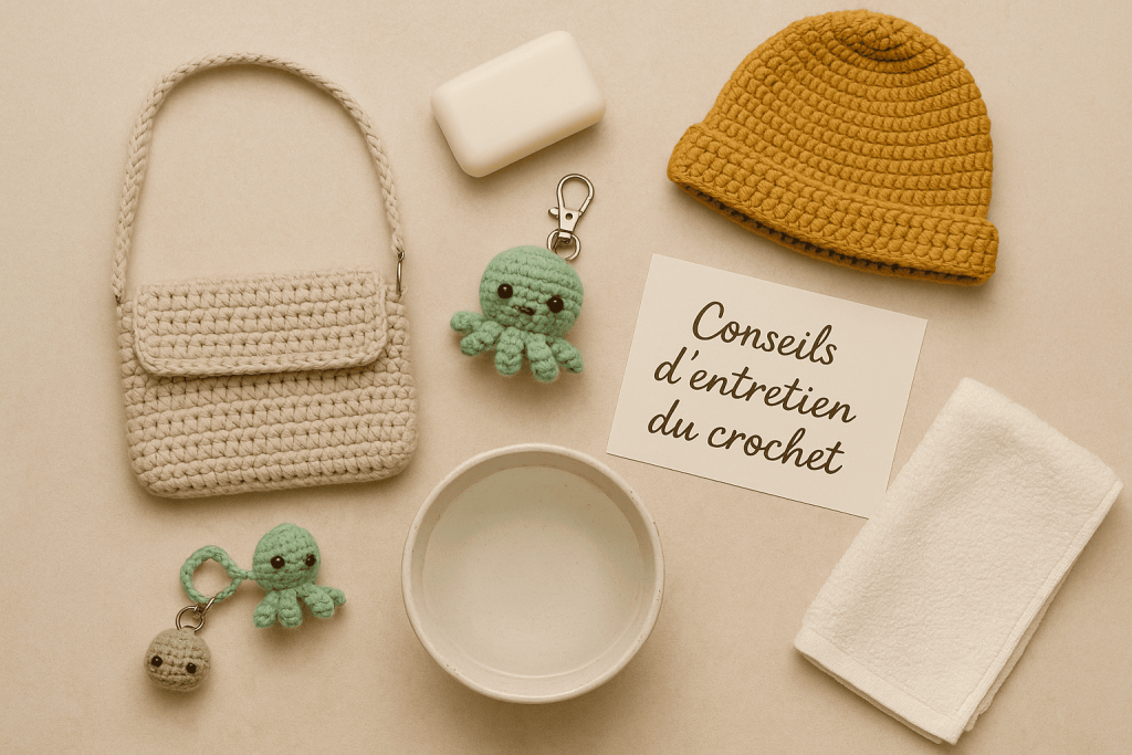 Les accessoires en crochet sont faits pour durer, à condition d’en prendre soin. En suivant ces quelques gestes simples, tu prolonges leur vie et leur éclat ✨.